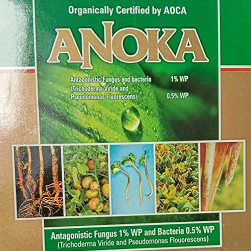 ANOKA (Consortium of Tricho & Pseudomonas): ANOKA is a consortium of bio control agents Trichoderma viride and pseudomonas fluorescens. This combination control various fungal diseases like Stem rot, Root rot, collar rot, Die back, Damping off, fungal wilt, Blast, Sheath blight, etc, & bacterial diseases like leaf blight, brown leaf spot, bacterial wilt, etc. and also improves resistance in the plant. Recommended: for all vegetable, tuber, cotton, chilli crops. Dosage: 2 – 4 kg per acre. Application: For Soil: mix 2kgs of Anoka in 200kgs of FYM / Vermi compost and add 1/2kg of jaggory water then mix it thoroughly and keep cover for one week in a shade then apply to the field while ploughing. Spray: mix 5gm of Anoka in 1 ltr of water and then spray. Seed treatment: Take 10gm of Anoka add little water and make it paste then apply to the 1kg of seed. For tuber crops / Seedlings: Take 500gm of Anoka mix it in 50 ltrs of water then soak the seed for 5 minutes