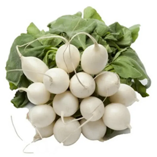 Characterised by white skin and flesh with a crunchy texture, white radishes can be round or long and cylindrical in shape, like the daikon radish. They are sweet and juicy but also have a hot, peppery flavour. They are generally milder than red radishes. Grate, shred or julienne for salads, slice and bake into chips, or add to pot roasts or casseroles.Radish comes in a wide range of colour and size variants, such as white, red, and purple, long, short,rounded and are a common ingredient in dishes around the globe. They are great to eat raw, and go perfectly with salads. Radish is also commonly used in various traditional Indian curries. Radishes being a lot juicy, also possess a great deal of health benefits, particularly in preventing jaundice, piles, urinary disorder, and cardiovascular deficiencies. Usually, the leaves, roots, and flowers of radish are consumed, and are found to act as a powerful detoxifier for your body.