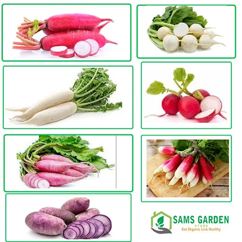 Growing Radishes from seeds is the fastest growing vegetable you will see. A Radishes seed takes 30 days from seed to harvest it usually without much effort. All Types Of Radishes seeds require warmth and light to grow fast. They can easily grow outdoors or in containers. It’s very important to buy organic vegetable seeds from a trusted source. Now you can buy All Types Of Radishes seeds online from Sam’s Garden Store, an online nursery located in Hyderabad. This combo contains
